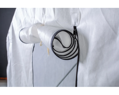 У нас вы можете купить чехол для теплицы 6,1 х 2,45 х 2,1 м из нетканого полотна спанбонд. Это достаточно большой чехол для теплицы, на передней части которого располагается входное отверстие, а также форточка на молнии. При необходимости чехол можно снять и убрать на хранение, он удобно прикрепляется к каркасу изнутри. спанбонд помогает рассеивать и пропускать то количество света, которое необходимо растениям для их оптимального роста. В жаркую погоду урожай не будет портиться. Отличается спанбонд от поликарбоната тем, что он не усиливает воздействие солнца. Кроме того, материал отлично пропускает воздух и свет, благодаря чему растения будут дышать.