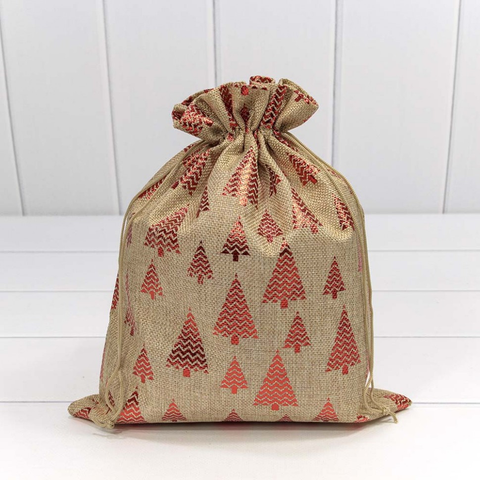 Купить Мешочки из искусственного льна 26*32 с рисунком Ёлки красный цена 110 руб. в Москве и СПб с доставкой по России