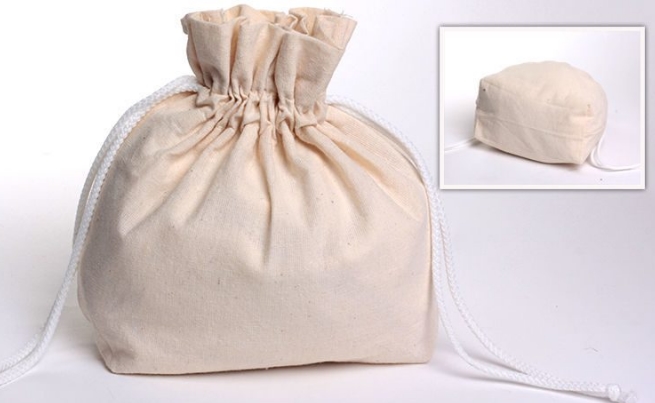 Бязевая упаковка сделана из натуральной хлопковой ткани. Данный материал прекрасно впитывает влагу, удерживает её в себе. Содержимое мешочка точно не испортится от воды, оно будет надежно защищено. Бязь прекрасно пропускает воздух, не вызывает аллергии. Это универсальный материал, который подходит для всех видов упаковки.