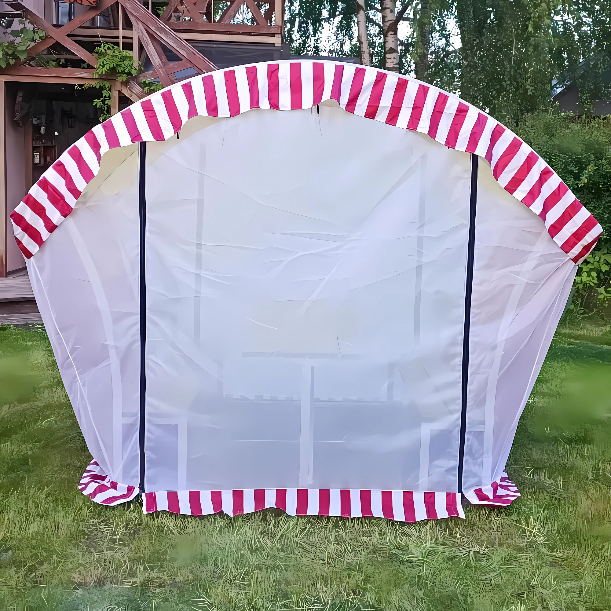Как и любые другие конструкции (к примеру, качели), садовая беседка нуждается в защите от негативного воздействия окружающих среды. Проливные дожди, снег, пыль, грязь, заморозки, УФ-излучения, знойная жара действуют на нее пагубно, нарушая эстетику и функциональность. Избежать этого, а также продлить эксплуатационный срок изделия помогают специальные сменные чехлы на беседку.