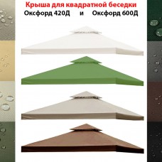 Данная крыша для шатра или беседки может иметь бежевый, молочный, коричневый, а также зелёный цвет. На данной крыше есть специальный клапан, предназначенный для вентиляции. Изготовлена такая крыша из Оксфорда. Это очень прочная и стойкая ткань, которая отлично драпируется. Изнутри она обрабатывается при помощи специальной пропитки, изготовленной из полиуретана, благодаря этому тент будет надёжно защищен от грязи, ветра и воды, а также любых других погодных явлений. Произведена данная продукция в России. При возникновении вопросов вы всегда можете обратиться к менеджерам для получения подробной консультации.