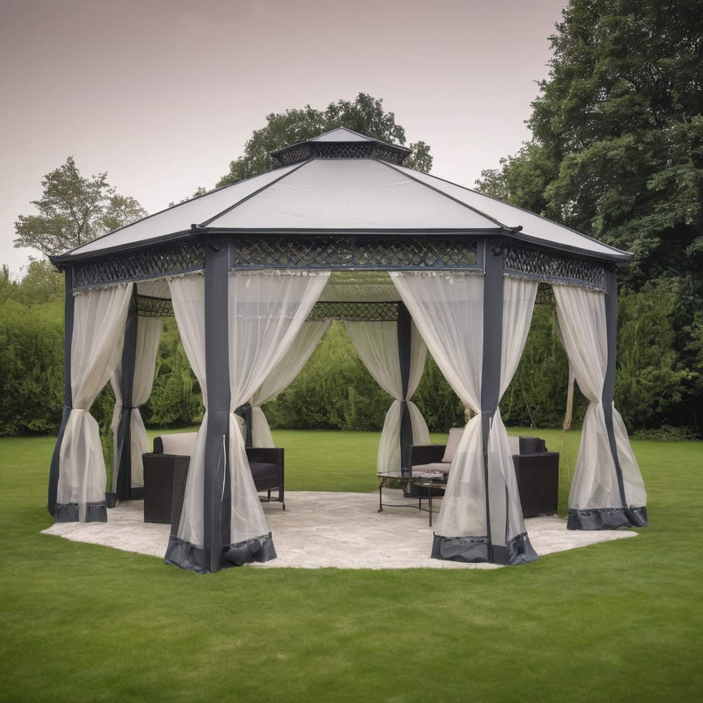 Серые москитные сетки на улицу в шестигранную беседку из Оксфорда и полиэфира