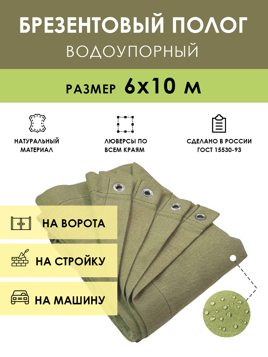 У нас вы можете купить брезентовый водоупорный полог 6 х 10 м стандарт. У полога есть люверсы, сделан он из материала, в составе которого содержится лен и хлопок. Полог имеет водоупорную пропитку, выполнен он в цвете хаки разных оттенков. Водоупорность данного изделия составляет 100 мм водного столба, сшито оно при помощи лавсановых нитей. Шаг установки люверсов в изделии - 0,5 м по периметру, также шаг можно изменить. Брезент - это прочное полотно, которое изготовлено из очень толстой пряжи. Такой материал не деформируется из-за изменения температуры и появления загрязнений. Будьте уверены, полог прослужит не один сезон.